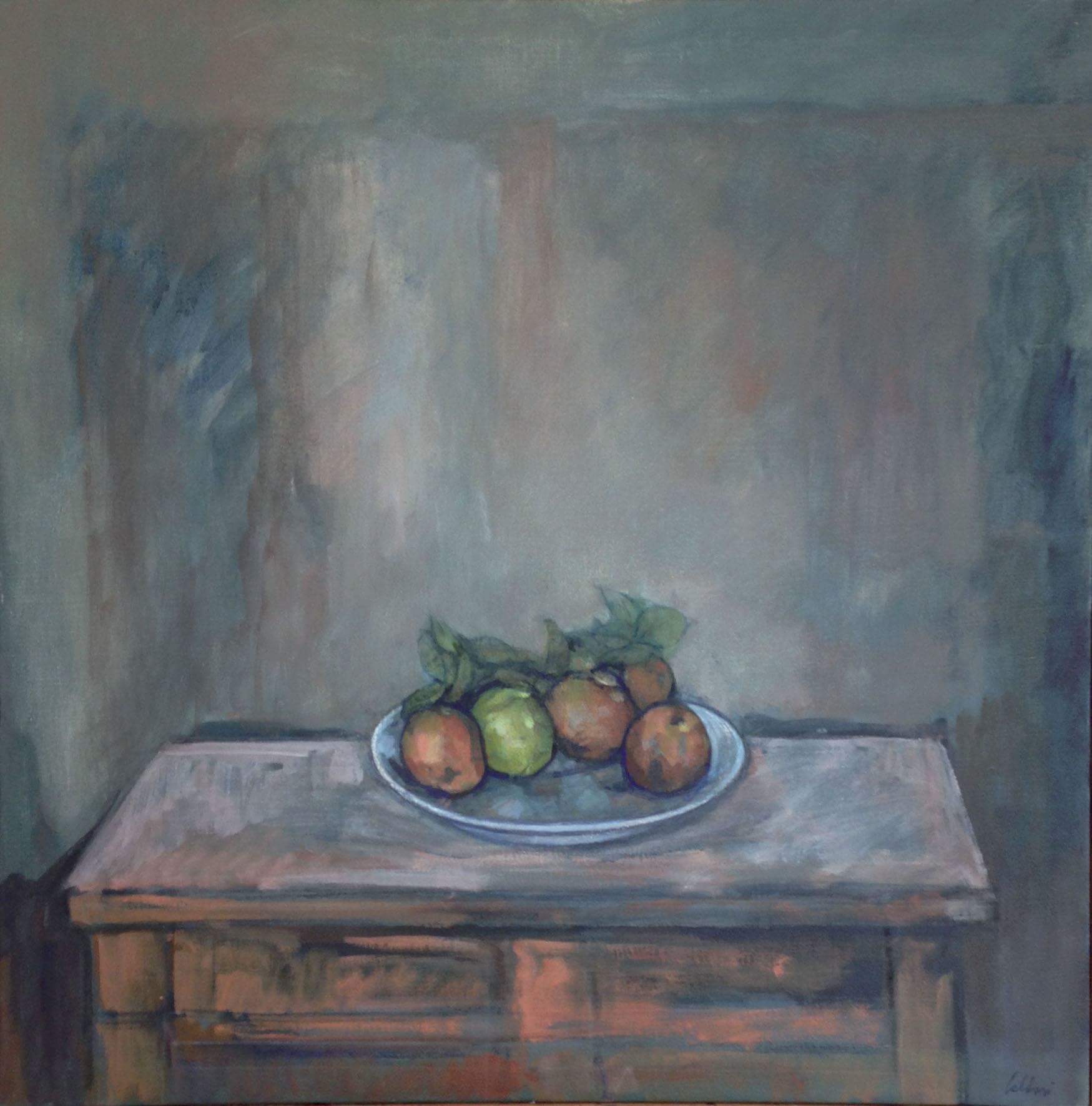 "Natura morta con mele cotogna" - Tempera su Tela cm.36x24